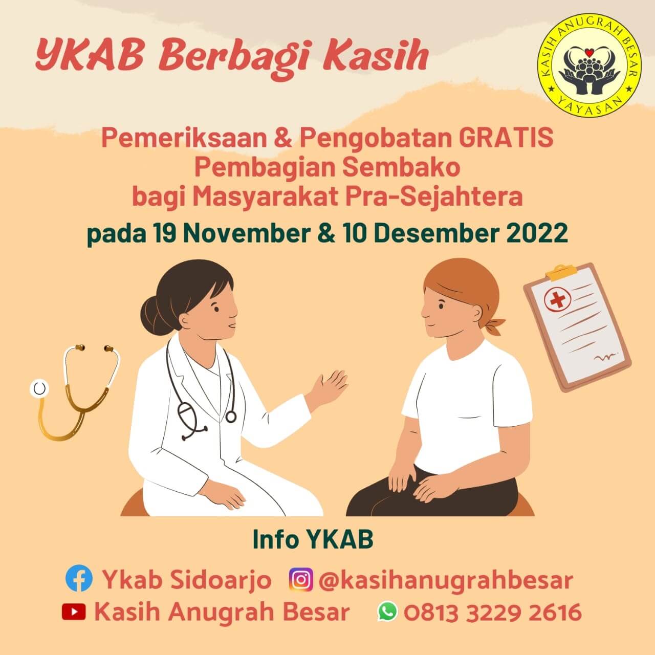 Pengobatan Gratis bagi warga yang kurang mampu. (Akan kita kerjakan di dalam & luar kota)